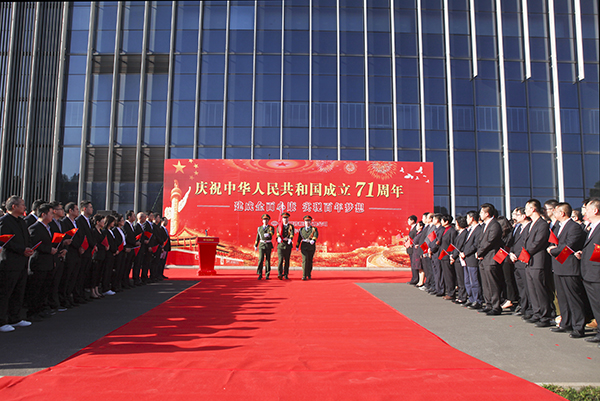 最后,全體員工合唱《沒有共產(chǎn)黨就沒有新中國》。在洪亮的歌聲中,升旗儀式圓滿的落下帷幕。