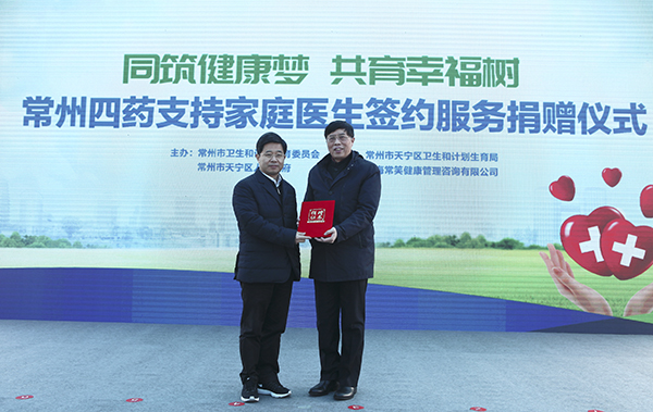 1月30日下午,“同筑健康夢(mèng) 共育幸福樹(shù)”常州四藥支持家庭醫(yī)生簽約服務(wù)捐贈(zèng)儀式在天寧區(qū)紫荊公園舉行。常州市副市長(zhǎng)方國(guó)強(qiáng)、常州市天寧區(qū)委書(shū)記宋建偉、常州四藥制藥有限公司董事長(zhǎng)屠永銳、常州市衛(wèi)計(jì)委主任朱柏松等領(lǐng)導(dǎo)參加了活動(dòng)。